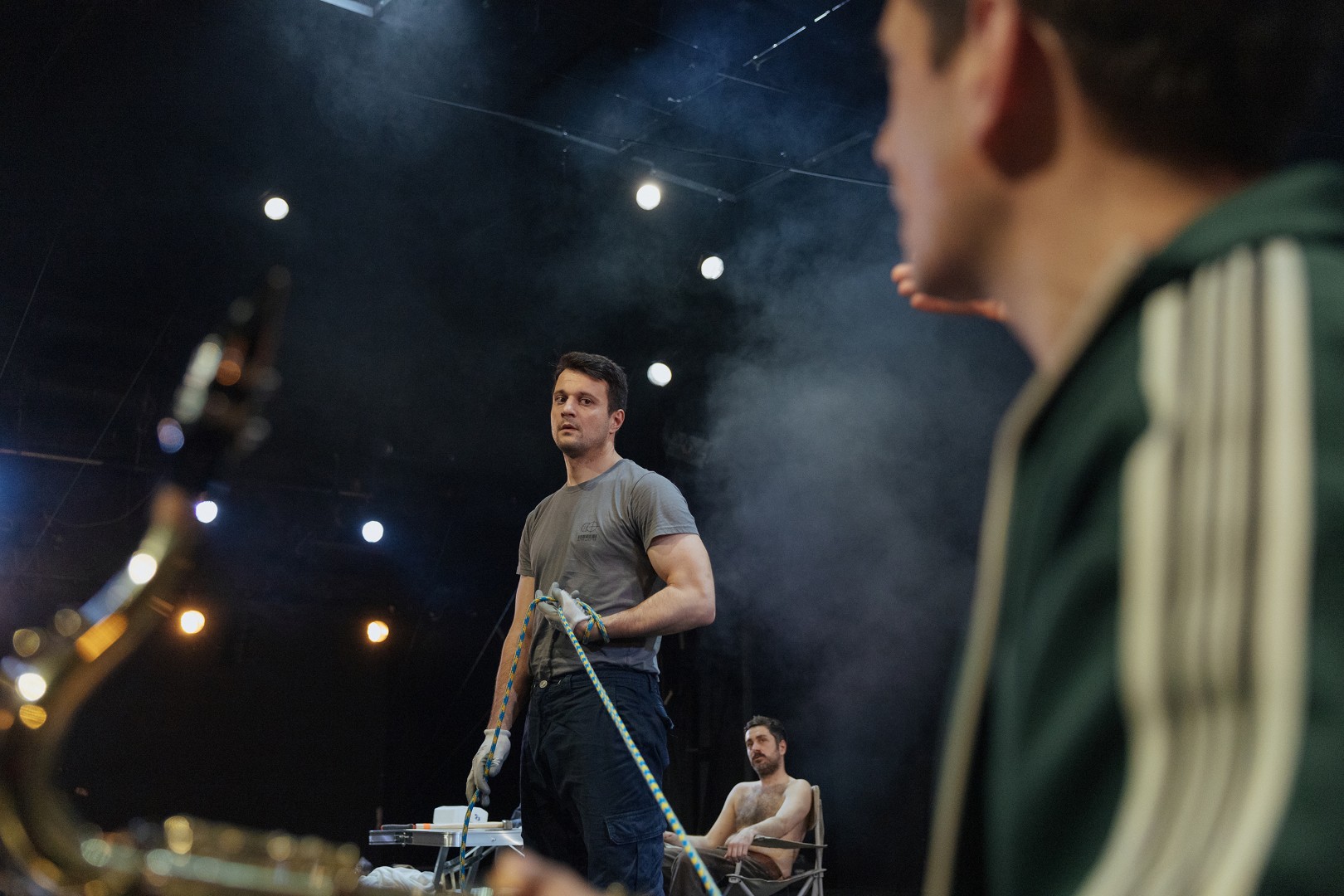 Na sceni punoj potencijalno opasnih predmeta – kliješta, sjekire, čekića, kanistera, konopca i drugih elemenata – nalaze se četiri izvođača, četiri sina, nalik bilo kojim sinovima od kojih se mnogo očekuje. Između kontrole i kaosa, stvarnog i zamišljenog, „Mekoća“ gradi prostor u kojem se preispituju obrasci maskuliniteta, ali i kazališni mehanizmi na koje smo navikli kao gledatelji.