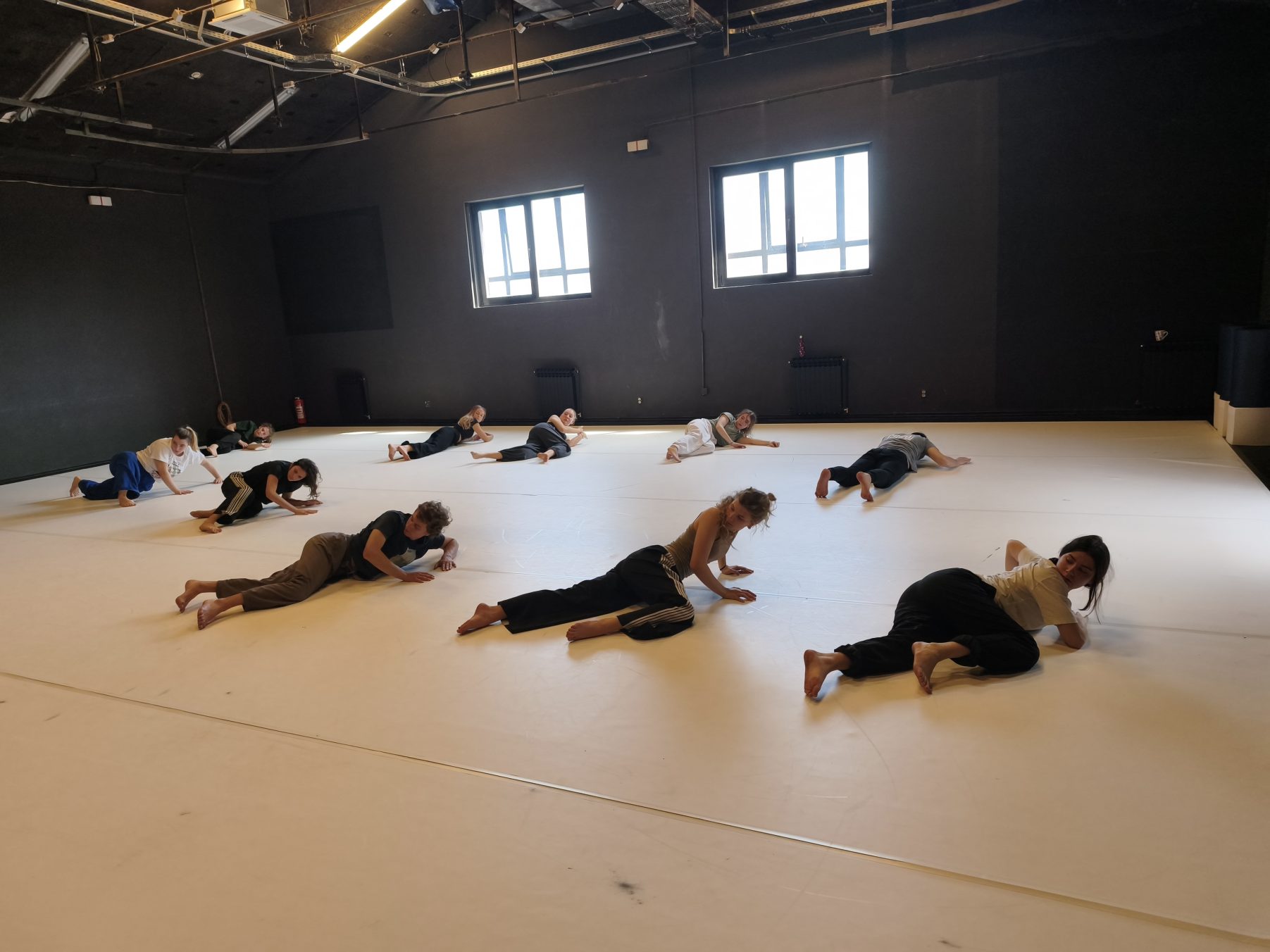 Radionica, pod vodstvom NINE FAJDIGE fokusirala se na tehnike Davida Zambrana: Flying Low, koja potiče istraživanje kretanja blizu i kroz podlogu, naglašavajući fluidnost i odnos tijela prema gravitaciji, te Passing Through, koja istražuje prostornu dinamiku i međusobnu povezanost izvođača.